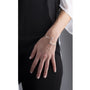 The Helix Cuff features a smooth, twisting design that wraps around the wrist in a clean spiral line. A discreet screw mechanism allows the cuff to open about one-third of the way, so it slips on easily while still looking sleek and continuous when closed.