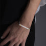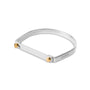 The ID Cuff is a clean, modern bracelet designed to carry something personal—your name, a date, a word, or a message you want to keep close. With its sleek cuff shape and minimal ID-style detail, it feels timeless and meaningful, finished with solid 14k gold details for a refined contrast.